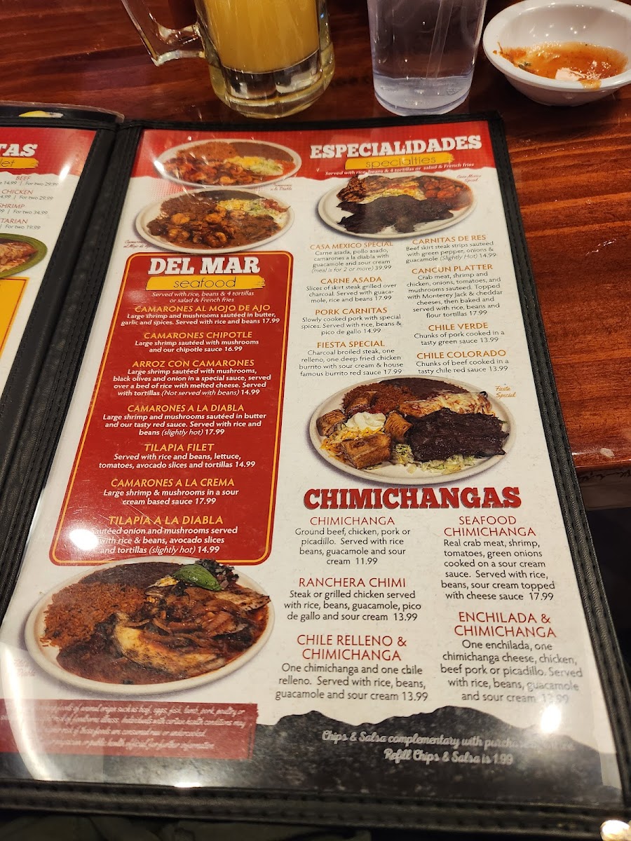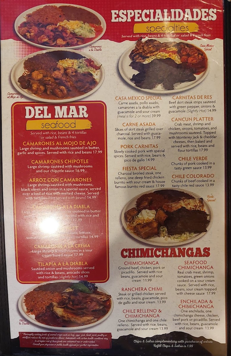 For those craving variety, the Chimichangas and Tacos section delights with options like Tacos Al Pastor and the seafood variant—each dish is a burst of flavor. Customers rave about the generous portions and exceptional taste, as evidenced by glowing reviews from satisfied diners. The cozy ambiance and attentive service enhance the overall dining experience. Whether you’re a local or just passing through, Casa Mexico is a destination worth visiting.